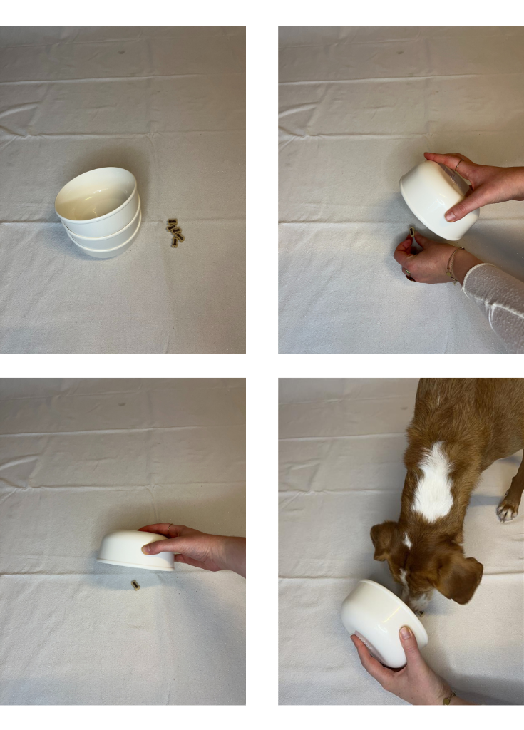 2. Leg in enkele van de 6 of 12 holtes kleine hondensnoepjes.