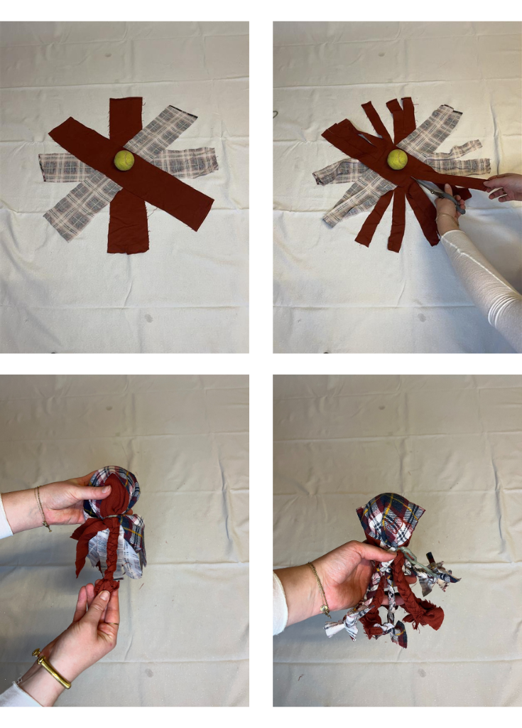 1. Neem een stuk stevige stof (bijv. een oude T-shirt of jeans) en een tennisbal