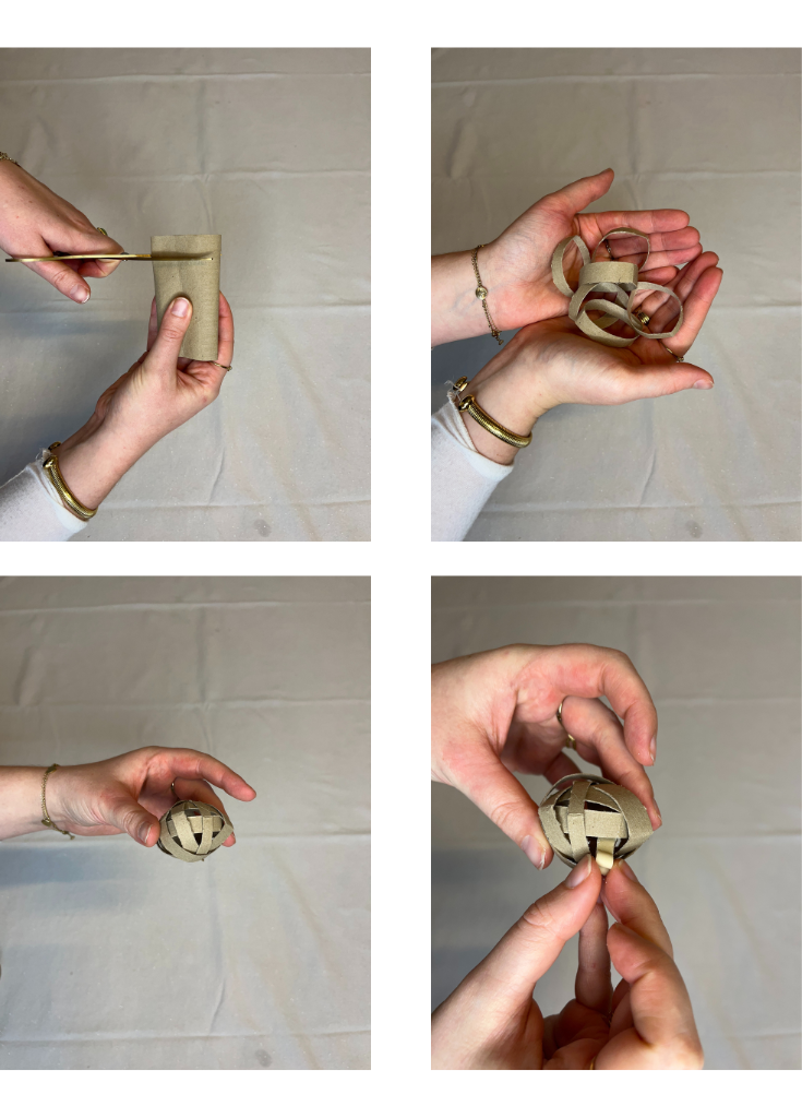 2. Schuif de stukken rol kruiselings over elkaar tot je een bal krijgt.